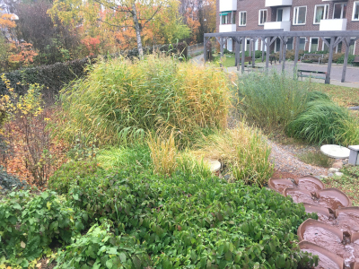 • Ett biologiskt reningsverk som skapar ett mikroklimat, där blommande växter och besökande fåglar förgyller landskapet.