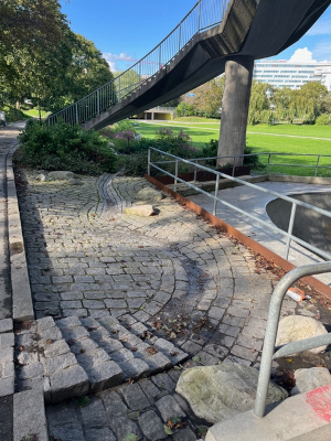 - Utloppet, regnvatten från hela parken leds ut till Riddarfjärden
