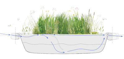 - Ett biologiskt reningsverk som skapar ett mikroklimat, där blommande växter och besökande fåglar förgyller landskapet.