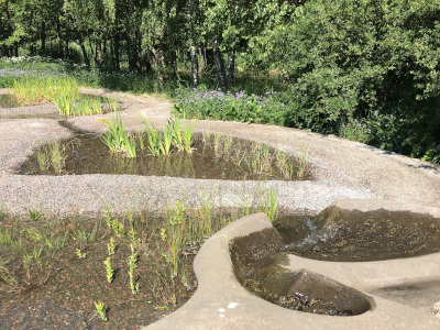 Dagvatten är en resurs som primärt handlar om att samla och lagra regnvatten till bevattning. Men det finns problem med stillastående vatten som ”ruttnar”. Virbela Ateljé konstruerar dagvattenanläggningar som håller det levande och friskt vilket är en förutsättning för att lagra vatten.