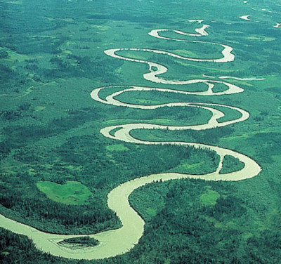 Vatten bildar vågmönster när ytan är vågrät men när vattnet rinner från en punkt till en annan (genom gravitationen) uppstår olika strömningseffekter. Meandern är flodernas moder som formar landskapet, dess strömmande vatten slingar sig fram och skapar virvlar och bakvatten. För den som vill skapa ett naturligt vattenflöde är det bra att förstå hur det uppstår. Vatten ur kranen förlorar sin naturliga rytm men man kan uppleva hur den återuppstår i vattenslangen som gärna vill vrida sig om när släpper taget.