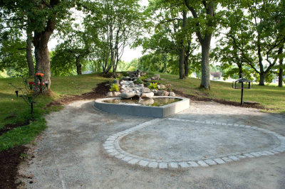 Kundens önskemĂ„l om en hjĂ€rtformad damm blev en extra utmaning för oss. För att bli klara inom tidsramen överlĂ€t vi konstruktionen av gjutformen till kunniga snickare. Vi Ă€r ett företag med spetskompetens inom vĂ„rt speciella omrĂ„de som samarbetar med andra experter via ett omfattande externt nĂ€tverk som vi byggt upp genom Ă„ren. Det nya inslaget i minneslunden har blivit mycket uppskattat â inte minst för den rogivande effekt som porlande vatten har.